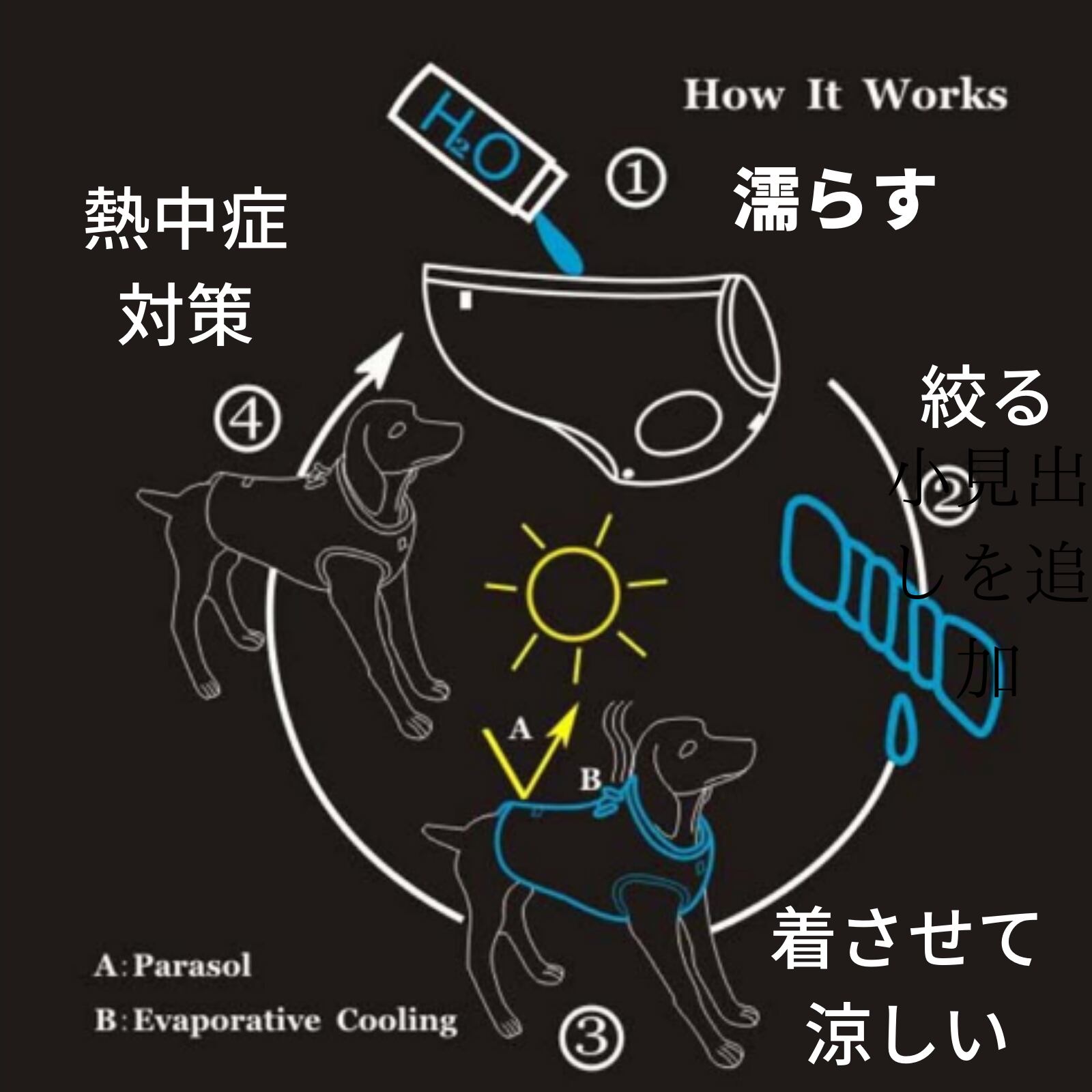 【クールベスト】夏は水で濡らすことで、体の熱を逃がしてくれます。(少し濡らして冷蔵庫で冷やしてもOK)冬はそのままジャンバーとして使用可能なので年中活躍するアイテムです。