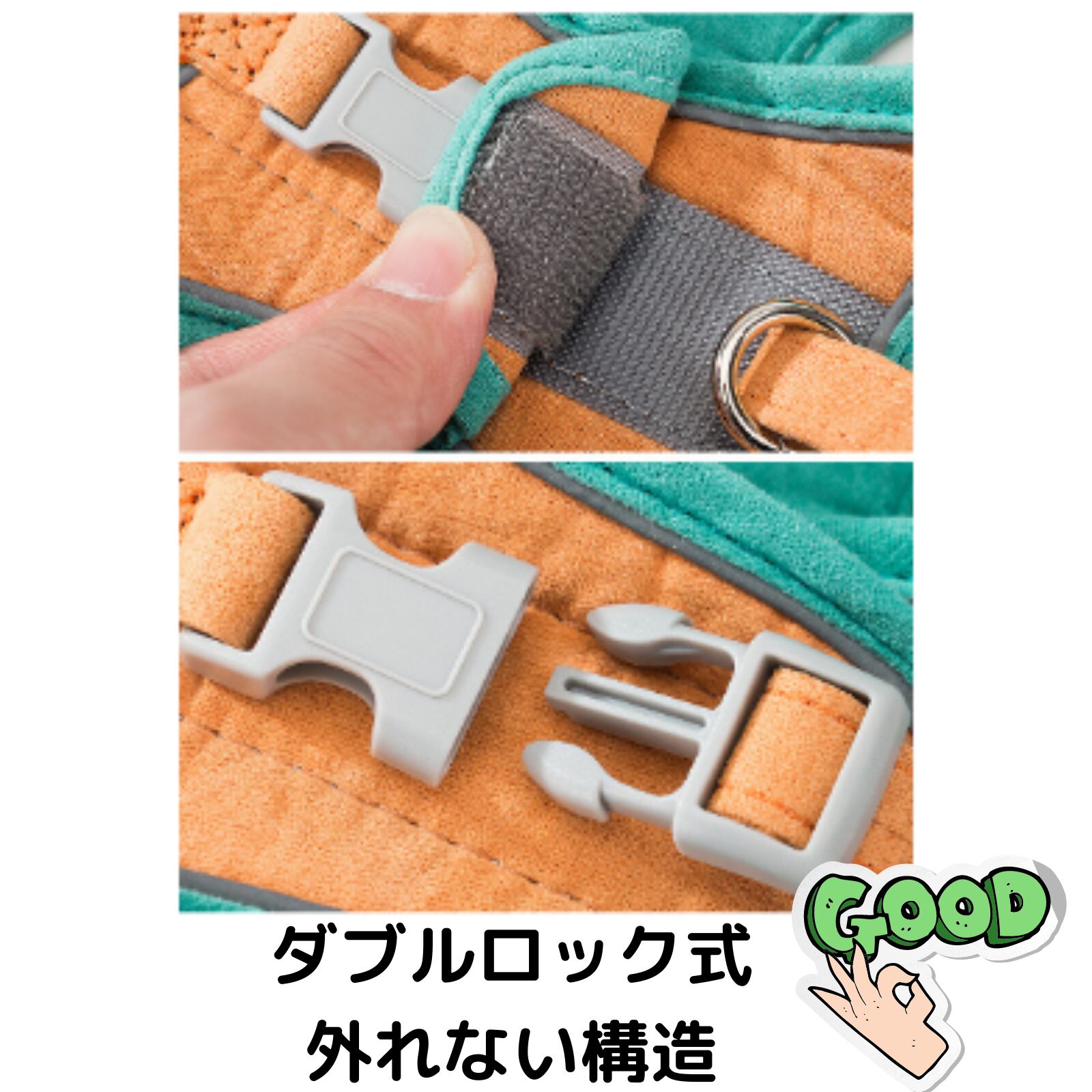 やわらかくフィットするソフトハーネスのサイズは体重に合わせて3サイズをご用意。背中側はダブルロックなので安心 【夜間でも安心の反射材使用】ぐるりと囲むように反射テープが付いたペット用の胴輪です。車のライトなどで光るので、夜間のお散歩でも安心です。